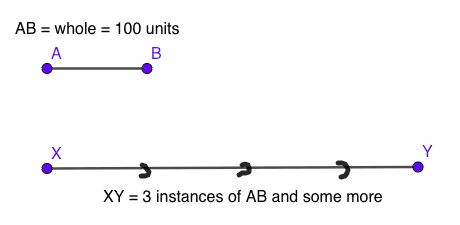 S: Taking a cue from what you said earlier, we can divide the whole (=AB) into 100 parts, and try to fit in as many parts as possible in the remaining portion.